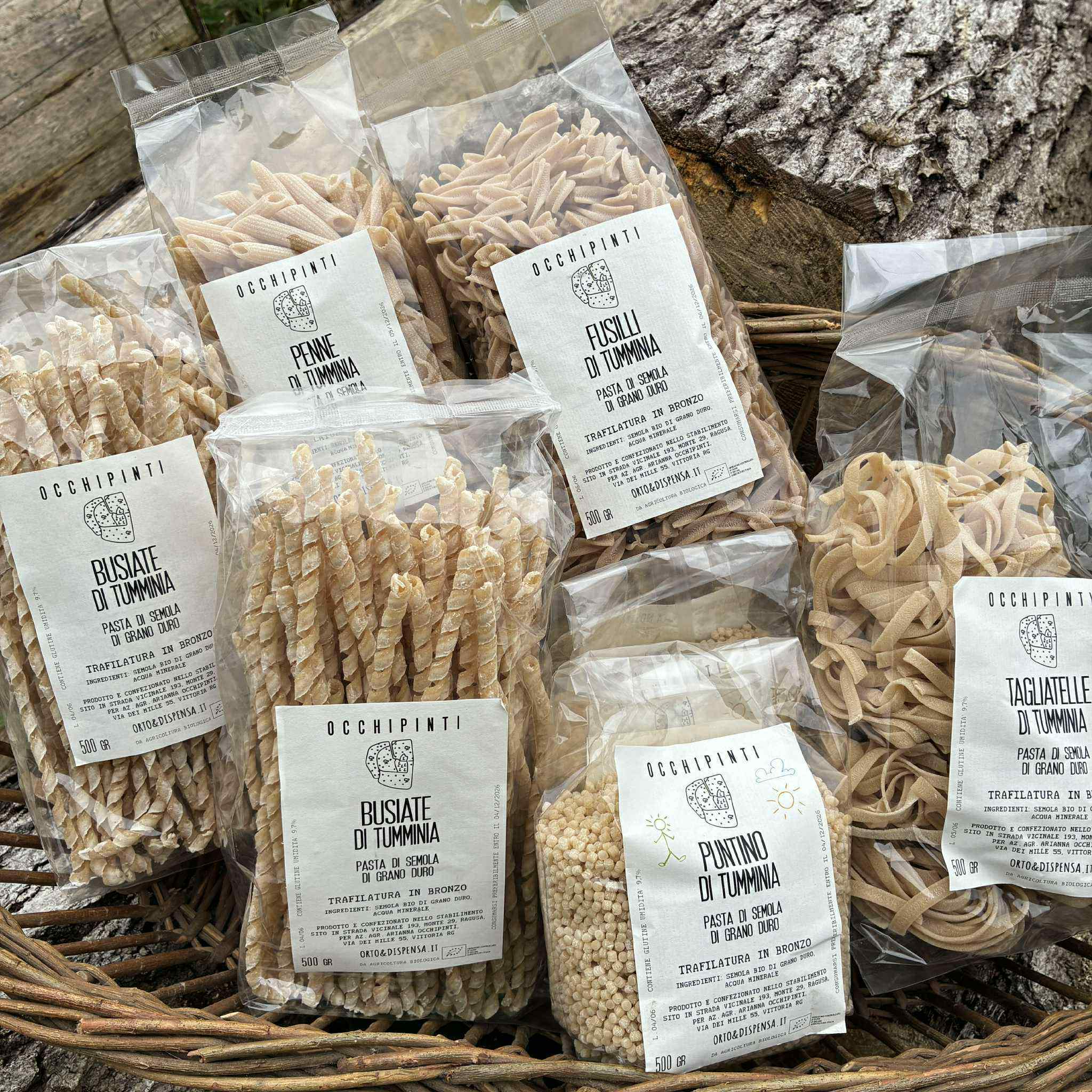 全部で5種、ペンネ、タリアテッレ、フジッリ(使用しているブロンズの型を変えたようで、マイナーチェンジがありました!)はいつもの定番ですが、新商品のブジアーテとプンティーノも届きました。アリアンナ農園で育ったトゥミニアというシチリアの古代小麦で造るのですが、その始まりは古代ギリシャの時代とも言われており品種改良されずに生産されてきた小麦の原種なんだとか。乾麺とは思えないほどのもちもち感でファンも多いパスタです。今やワインだけに留まらず、未来を見据えて次世代の子供たちに向けた食育にも力を入れているアリアンナから目が離せません!人気がございましたスパゲッティは現在製造されていないため、麺タイプはタリアテッレと今回のブジアーテとなっています。