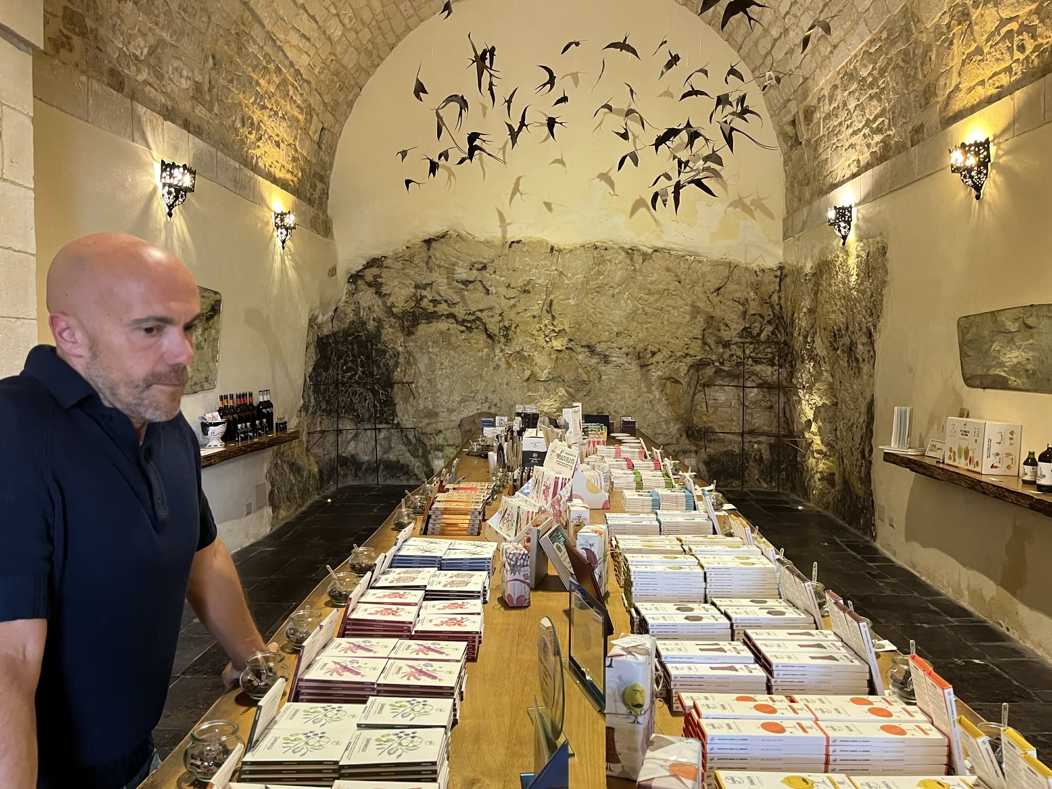 いわゆるソフトヌガーが3種、それからアーモンドがゴロゴロ入っているハードタイプのヌガーの計4種です。サバディのヌガーは一般的なものと比べるとナッツの割合が多かったり、甘さは蜂蜜と少しのきび砂糖からなので控えめです。蜂蜜をたーっぷり使用するのは、シモーネが軽やかに食べられるように拘っているポイントでもあります。甘ったるさとは無縁の素敵なシチリアン トッローネ、是非お試しくださいね。材料に使用しているノート産のアーモンド、ブロンテ産のピスタッキオ、様々な蜂蜜は全てスローフード プレシディオのアイテムです。