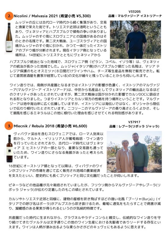 ここまで長い文章にお付き合いいただきありがとうございました。隣接しあう3つの州だけでもこれだけ状況が異なるわけです。土壌特性や微気候といった要素だけでなく、時代背景にも目を向けることで見えてくるものがあるかと思います。例えばオレンジワインというものについて考えるにしても、ボトリングされたワインを飲むのが当たり前な時代の目線からは見えてこない側面があるのではないでしょうか。本質を知りにいくためには時計の針を少し戻すことも必要だと思います。そして、「イタリアのインポーターなのになぜスロヴェニアのワインを扱っているのですか?」という質問を受けることがたまにあるのですが、こういった時代背景を理解していれば、むしろフリウリ(ヴェネツィア ジューリア)のワインを扱っていて、スロヴェニア西部やイストリアのワインを扱っていない方が不自然なわけです。