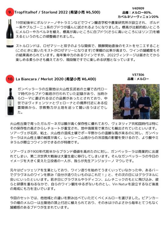 この地域はゲルマン的な職人意識が強く、各村の協同組合でとてつもなく高品質なワインが造られており、そのためもあってか個人で自家元詰めしようという雰囲気が醸成されるのが比較的遅い地域でもありました。また、フランス系の品種が多いのは、オーストリア統治時代にヨハン公がブルゴーニュ系の品種を持ち込んだのが下地となったといわれています。品種構成が地域ごとに異なるのは、気候や土壌だけでなく、統治や物流面の理由もあるというのが面白いところです。
