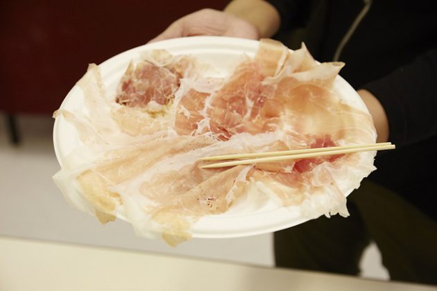 弊社が今まで輸入していた7つの部位以外に、当然のことながらサラミも生産していたのですが、とある理由で日本への輸入は叶いませんでした。その理由はというと…、無添加だからなんです。他の生ハム類と違ってミンチにするという(他のプロダクト以上にバクテリア汚染の可能性が高まる)工程と端肉で作られるという間違ったイメージがあるからなのか、亜硝酸塩を添加していないサラミは日本に輸入できないのです…。添加物が多くて輸入できないのではなく、添加物を使ってないから輸入できないだなんて…もともと使わずに作っていたからこそ使っていないだけの話なのに…。本当に変な話ですよね…。そんなこんなで、日本の食品衛生法様に則ったサラミを彼らに作ってもらいまして、それがようやく届いた次第です。2-3本を税関で検査のために取られちゃいましたが(チキショー!)、皆さんにも食べていただけるかと!こんなサラミがあるのか!とびっくりしていただけると思います。