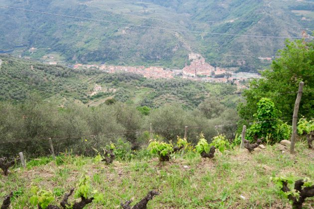 畑も小さなテラス状となっていて、アルベレッロ仕立て、ものによっては樹齢100年超、全ての作業を手で行い、農薬としては硫黄だけを使用しているとの事。