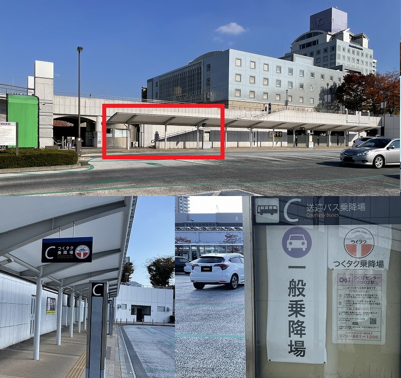 ※1 無料送迎バス乗車をご希望の方は、TXつくば駅[A3]出口を出てすぐ目の前のロータリー(有料駐車場)の「[C] つくタク乗降場」にお越しください。