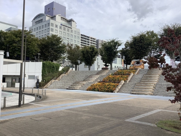 最短距離はこちらの通りですが、信号がなく植栽もあるペデストリアンデッキ(A3出口を出て右手の階段を上り、常陽銀行方面へ)から歩いてくるのがおすすめです。