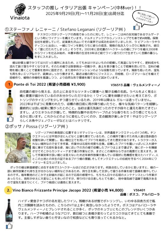 スタッフの推し イタリア出張 キャンペーン(中林ver)!!